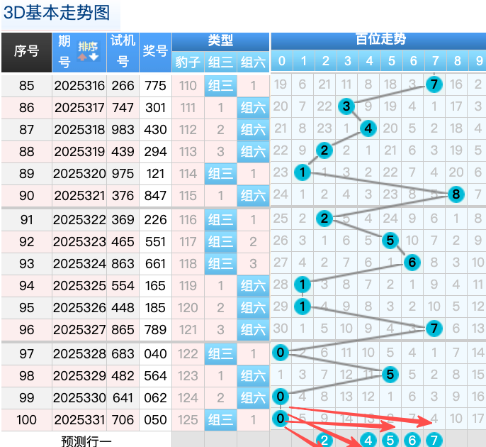 3D上期百位开出的0号球,这个奖号是一个冷码重码的回补落位趋势也是一个比较好的符合百位上的落位点,先来看2号球这里还是有机会继续走出一个常搭配的趋势也是一个小周期的热回补号码,还有一个就是4号球和5号球这里的号码落位形态的概率在这里的机会还是很好的要注意防守,然后9号球这里要注意也是一个大号的间隔17期回补码落位趋势要注意防守,1号球在百位上要注意可能有机会走出顺位回补的落位注意防守 。