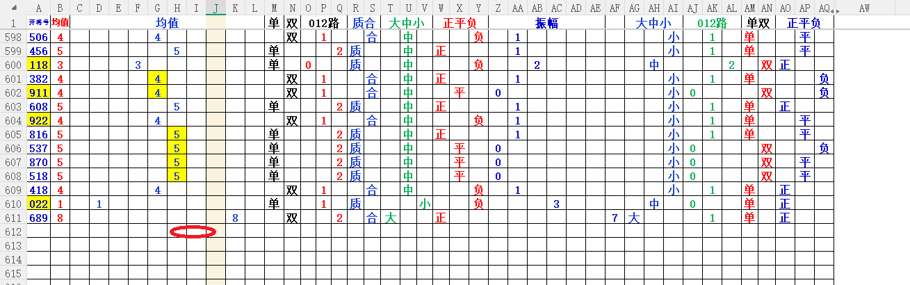 均值:就是开奖号每各数的总和除3,然后得到的余数,如果不够整除可以+1,-1,直到被整除得的数就是均值