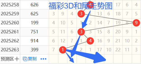 们依次是39341和尾,按照012路排序是00011路和尾,后面两期是同路,今天就是2路或0路的和尾,为什么这么讲呢,这个是个大概率的问题,也是根据长期的研究规律定的,准确率相当高,我定了2 0路的和尾,也就是2580369和尾,那么我们再来看和值,按照和值除3余数的话,可以分为余0 1 2路. 那么我们来看259期和值13余1,260期和值19余1,261期和值13余1,262期和值14余2,263期和值21余0,那么本期和值看余0余2,根据上面的和尾那么就只有12 15 18 9 6 和值