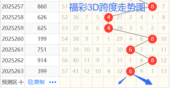 依次是48686跨度,按照路数转换关系来看,那么跨度我们暂定258369跨,本期个人比较看好5 8 防7跨。