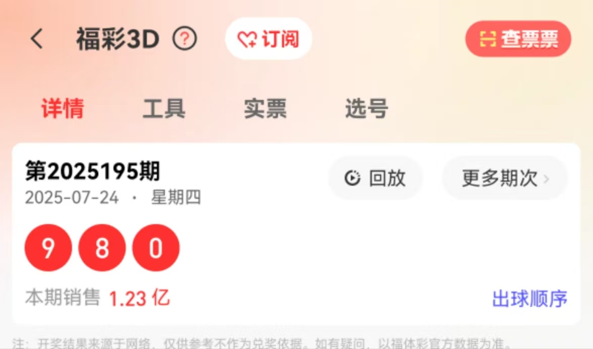 福彩3D2025第196期: