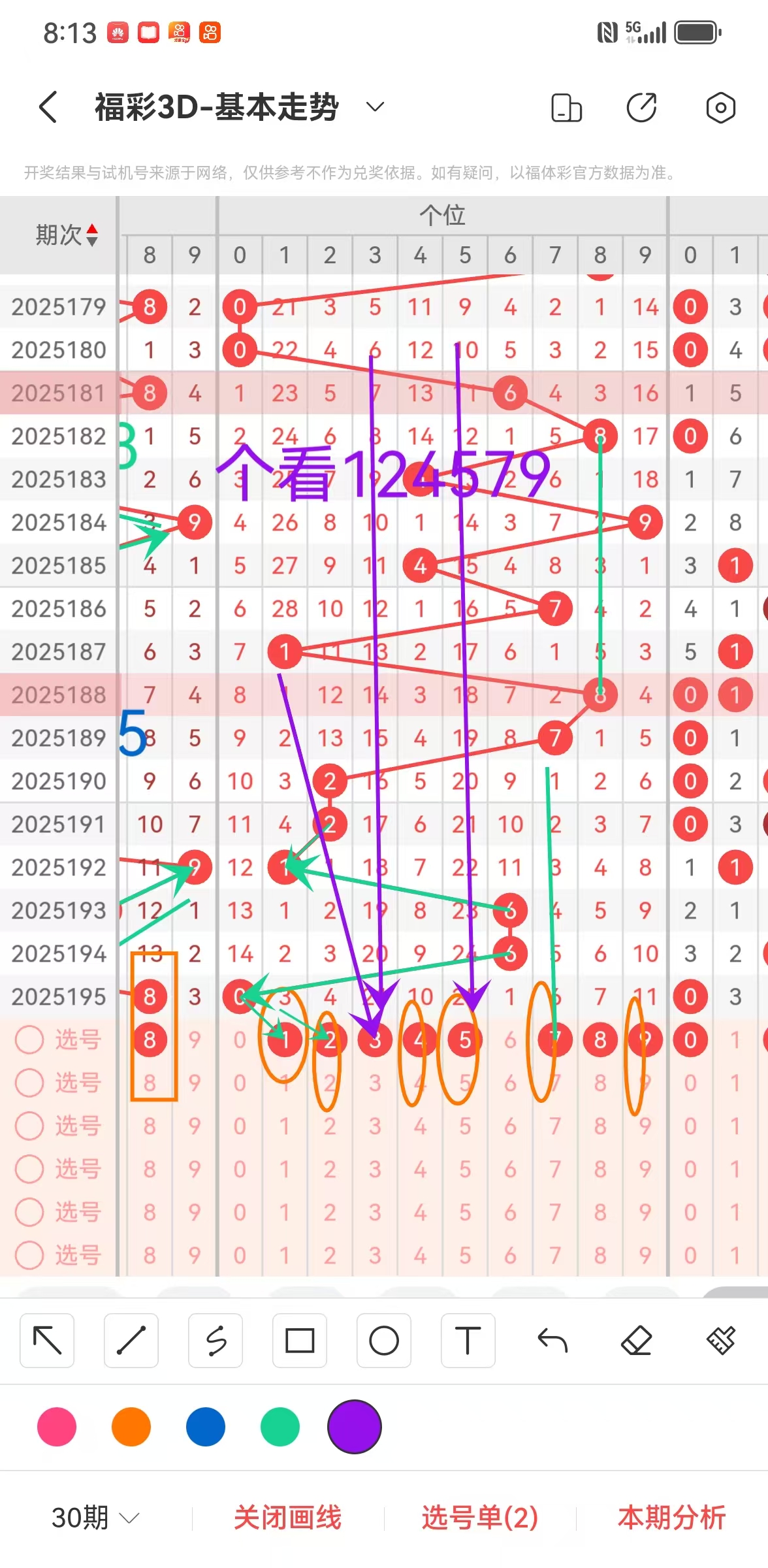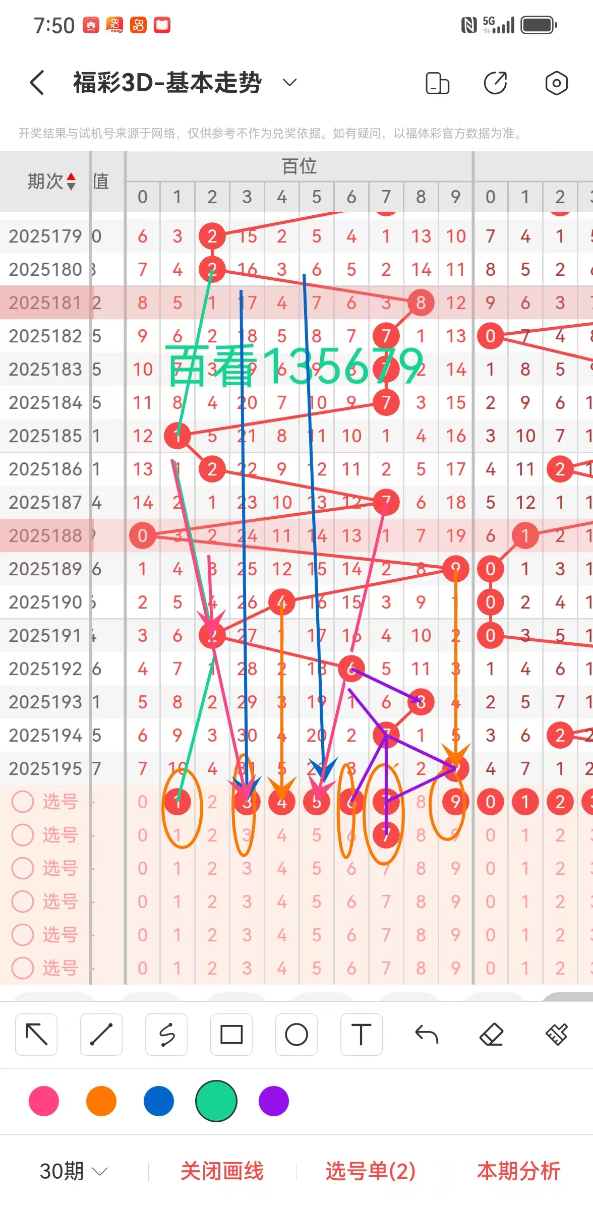 1、福彩3D第196期百位分析如下图: