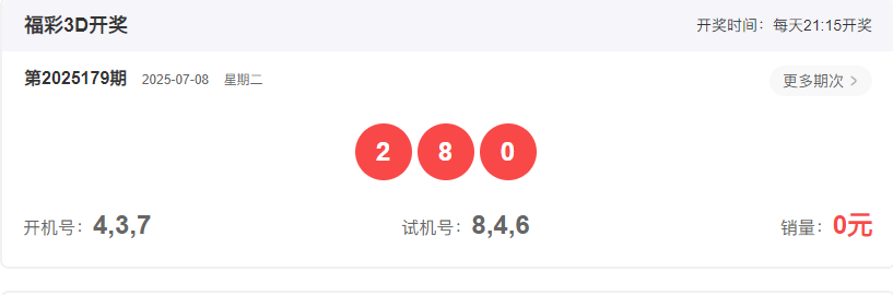3D上期开奖回顾: