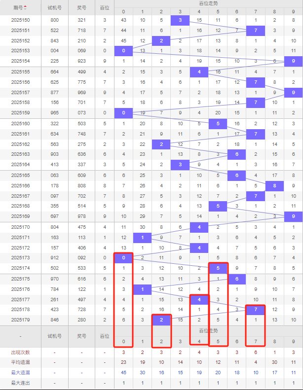 2025180期五码定位(百位、十位、个位):