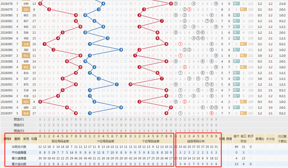 第四步:取近百期数据杀跨度/杀和值尾判断