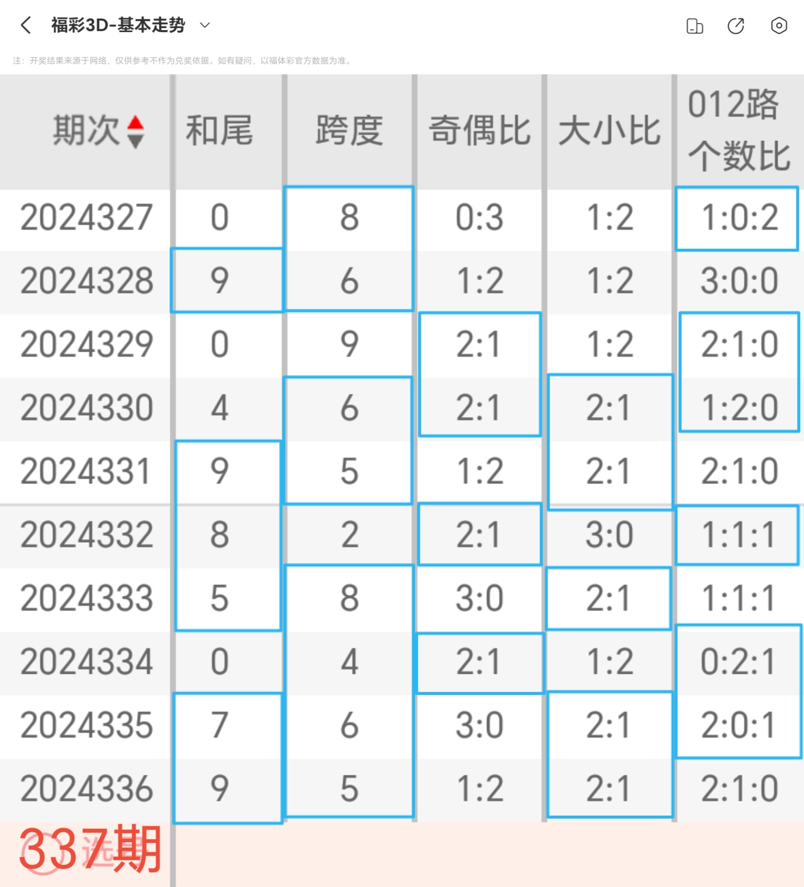 以上是福彩3D第2024337期全部分析内容