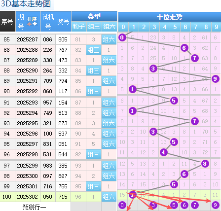 上期的3D个位5号球,上期开出的是组六按照形态的话本期打组六形态,上期5号球的落位是个位上一个重码码回补落位形态,本期先来看0号球和2号球在个位还是有机会走出两个常搭配的落位点还是两个都是冷热号码这里的两个小号码码要注意抉择,然后7号球也是一个热码的落位趋势要注意是拉拽的形态,6号球这里的落位点要注意走出冷码回补的一个顺位概率这个点位还是非常好落位点。