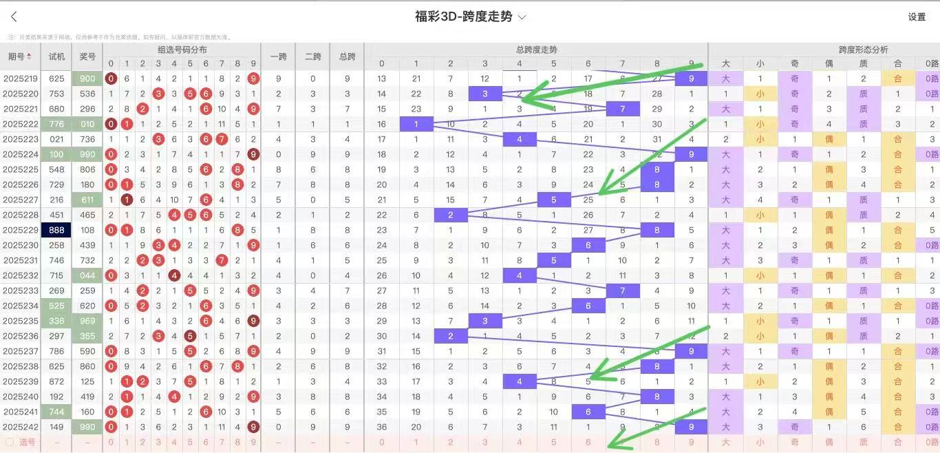 2025243期福彩3D跨度走势图如下: