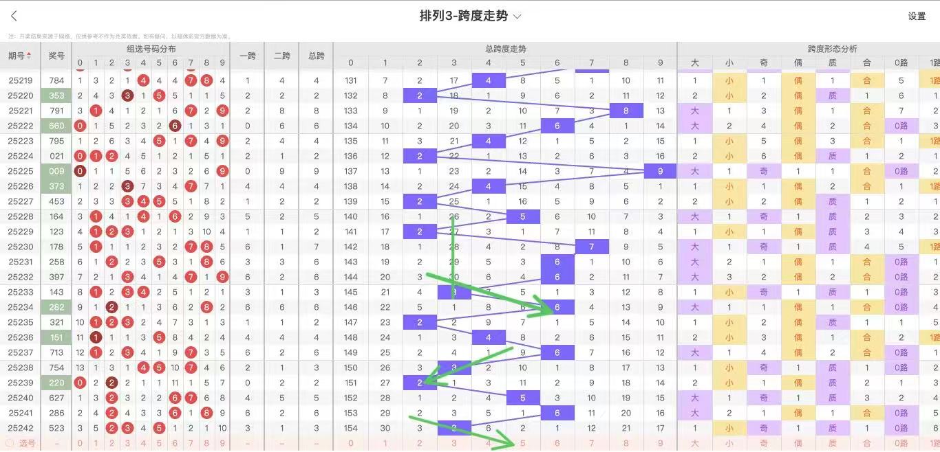 根据走势对跨度观察统计得到以下分析结果: