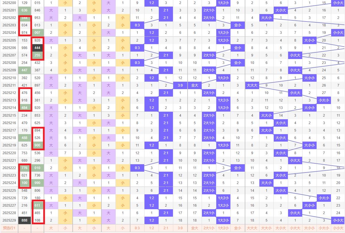 跨度分析 根据近10期的跨度走势及012路、奇偶比、大小比的综合分析3-7-1-4-9-8-8-5-2-8,012路比为2:3:5得出以下结论: - 本期重点关注1路和0路跨度,特别是跨度3.4.56.这几种跨度在历史数据中具有较高的出现概率。 - 同时,也需留意偶数跨度和小数跨度的出现,但需注意其出现频率的波动性。跨度3和6的概率很大