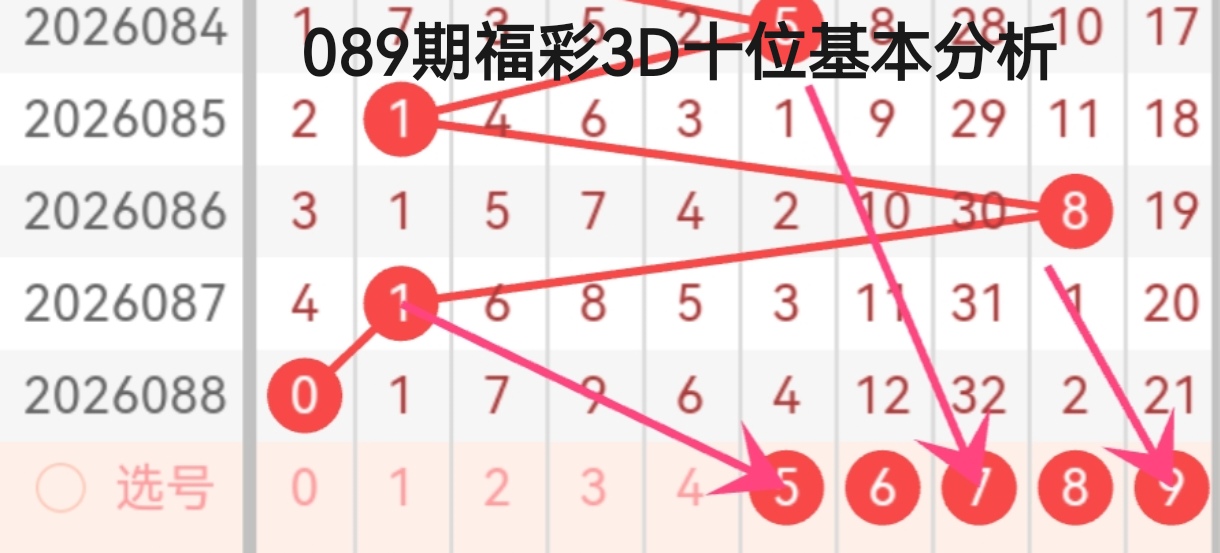 从近期开奖数据来看,福彩3D十位号码呈现出明显的冷热交替与趋势延续特征,结合2026084-088期走势,对089期十位号码做如下分析: