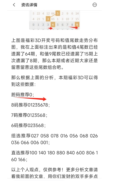 上图是福彩3D开奖号码文章分析的截图,最后我推荐的胆码正确,下面来分析本期的福彩3D。