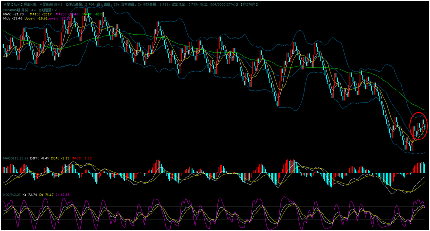 昨天同样也是上方的当期遗漏K线图,通过图中红蓝格子可以看出节奏感还是比较强,所以昨天组六分析中判断大概率开个红格子之后再看蓝格子,判断的是组六为主,组三防守,结果果然开出红格子,今天上面的图中可以看出红格子已经开出,macd指标继续死叉,底部量能继续放大,所以今天判断开蓝格子是大概率,组三为主,组六防守。