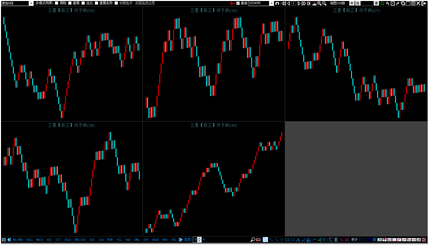上图是对码胆的K线图,对码0回调两期就开出红格子,这个位置横盘震荡趋势节奏不是很明显,对码2的节奏感比较强,昨天判断对码2开蓝格子,所以昨天的胆码中直接就把2排除了。但是今天大概率会开红格子了,对码3大概率还要调整,对码4继续走趋势行情。