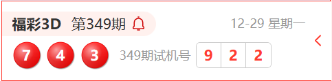 福彩3D第349期开奖结果为:743