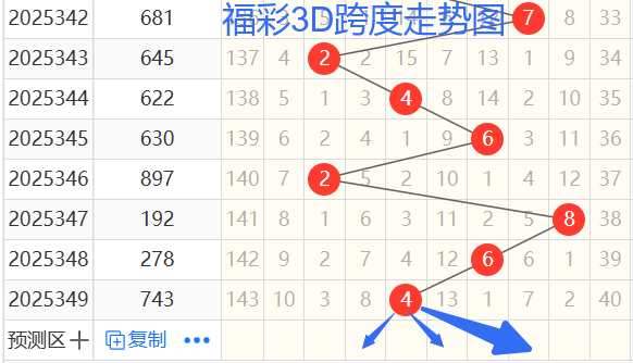 依次是62864跨度,按照路数转换关系来看,那么跨度我们暂定147369跨 ,本期个人比较看好 3 7 5跨。