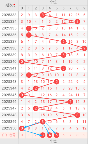 现在我给大家分析下,本期个位可能开出的号码,上期开出了0,338期开出了9号码球,339期开出了6号码球,340期开出了6号码球,341期开出了0号码球,342期开出了1号码球,343期开出了3号码球,344期开出了2号码球,345期开出了0号码球,346期开出了7号码球,347期开出了2号码球,348期开出了8号码球,349期开出了3号码球,350期开出了0号码球,跟据这几期的走势和历史30期内的走势对比,可以先考虑本期可能会出小号,下面我给大家推存个位可能开出的几个号,个人比较看好345,个位我们就先暂定这两个号。本期重点关1-6之间的号码,同时关注遗漏期数较大的号码。按最近遗漏走势,开了遗漏期数较大之后开遗漏期数小的可能性比较大。