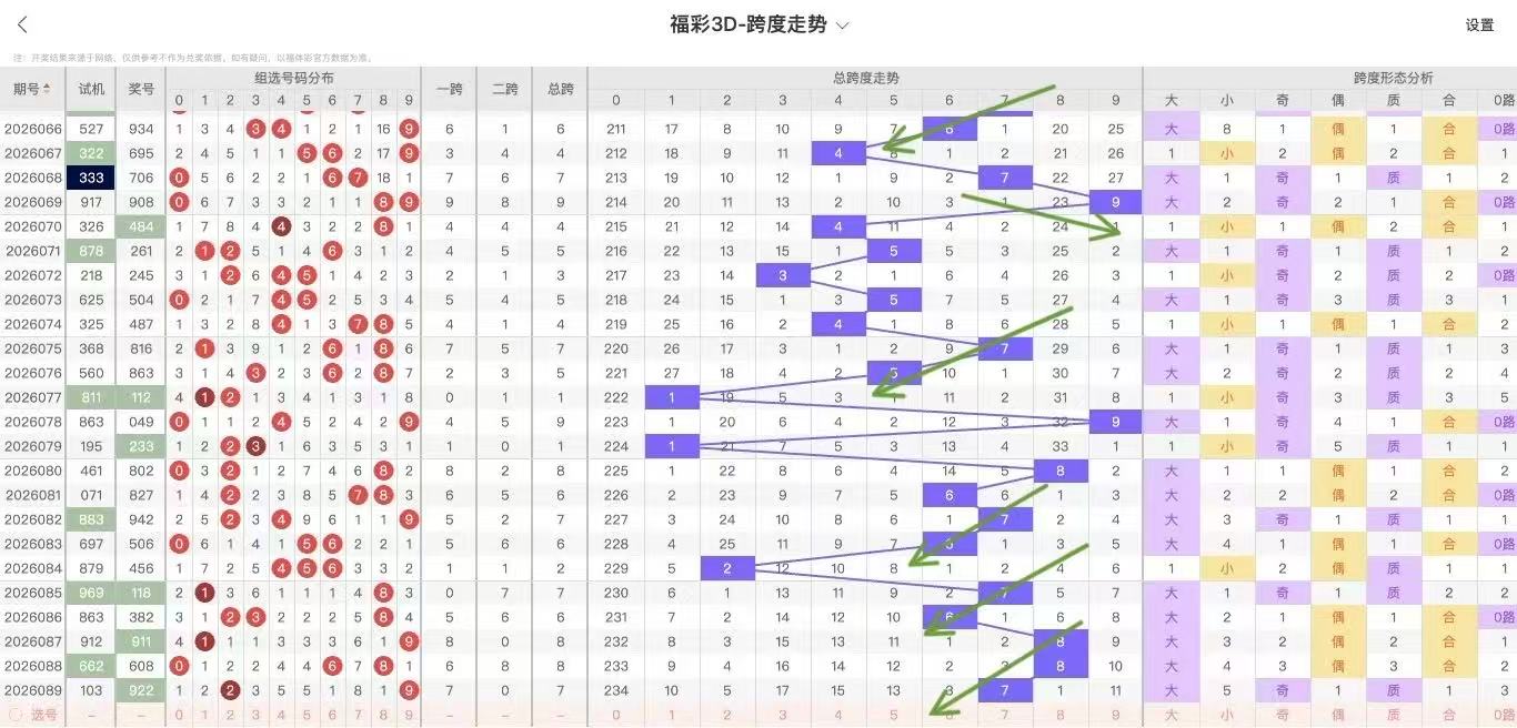 2026090期福彩3D跨度走势图如下:
