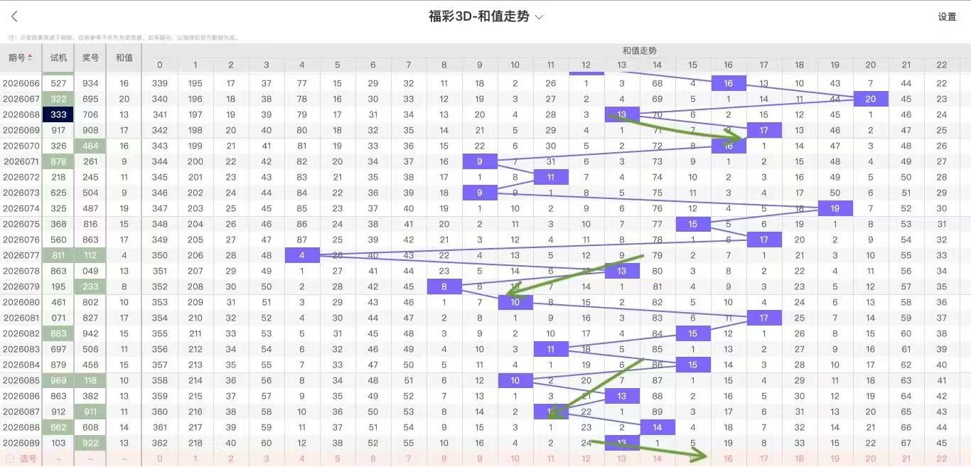 2026090期福彩3D和值走势图如下: