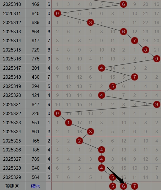 上期和尾为5,近5期和尾开出情况:第25325期开出2,属于偶数,2路号码,火属性;第25326期开出4,属于偶数,1路号码,金属性;第25327期开出4,属于偶数,1路号码,金属性;第25328期开出4,属于偶数,1路号码,金属性;第25329期开出5,属于奇数,2路号码,土属性;