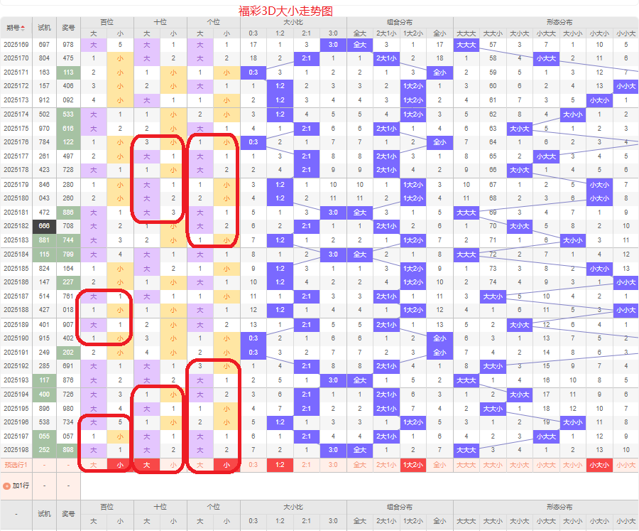 上期大小比为3:0,全大的号码组合方式,从近五期出现情况看,大号码出现10次,小号码出现5次,大号码出现较多,本期侧重两小的号码组合,本期百位侧重小号码,十位本期走大的概率很大,个位要侧重看小,侧重小大小或者大小大的号码组合,根据大小做五码定位01234/56789/01234或56789/01234/56789