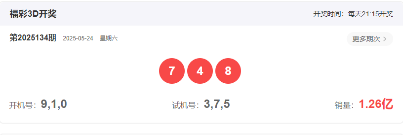 2025134开奖号码: