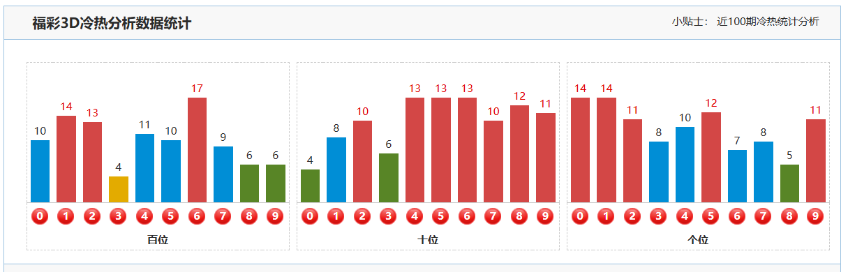 2. 十位分析:上期福彩3D的十位开出了号码9,这是一个大的奇数。从近期的开奖数据来看,十位号码在多个位置上频繁出现,表现出较强的活跃性。然而,值得注意的是,上期的十位号码振幅变化较小且呈上升趋势。本期在十位的分析中,我们预期该位会回补下降,即关注那些与上期相比数值有所减小的号码。因此,本期重点关注号码01345678