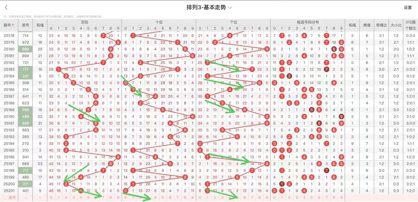 202期体彩P3基本走势图如下: