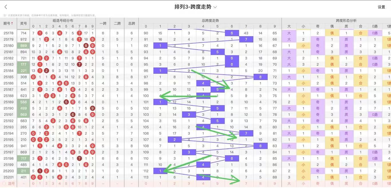 根据走势对跨度观察统计得到以下分析结果: