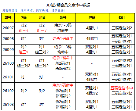会员文章中杀2码对1,杀3码对2。4胆对1,本期再接再厉。