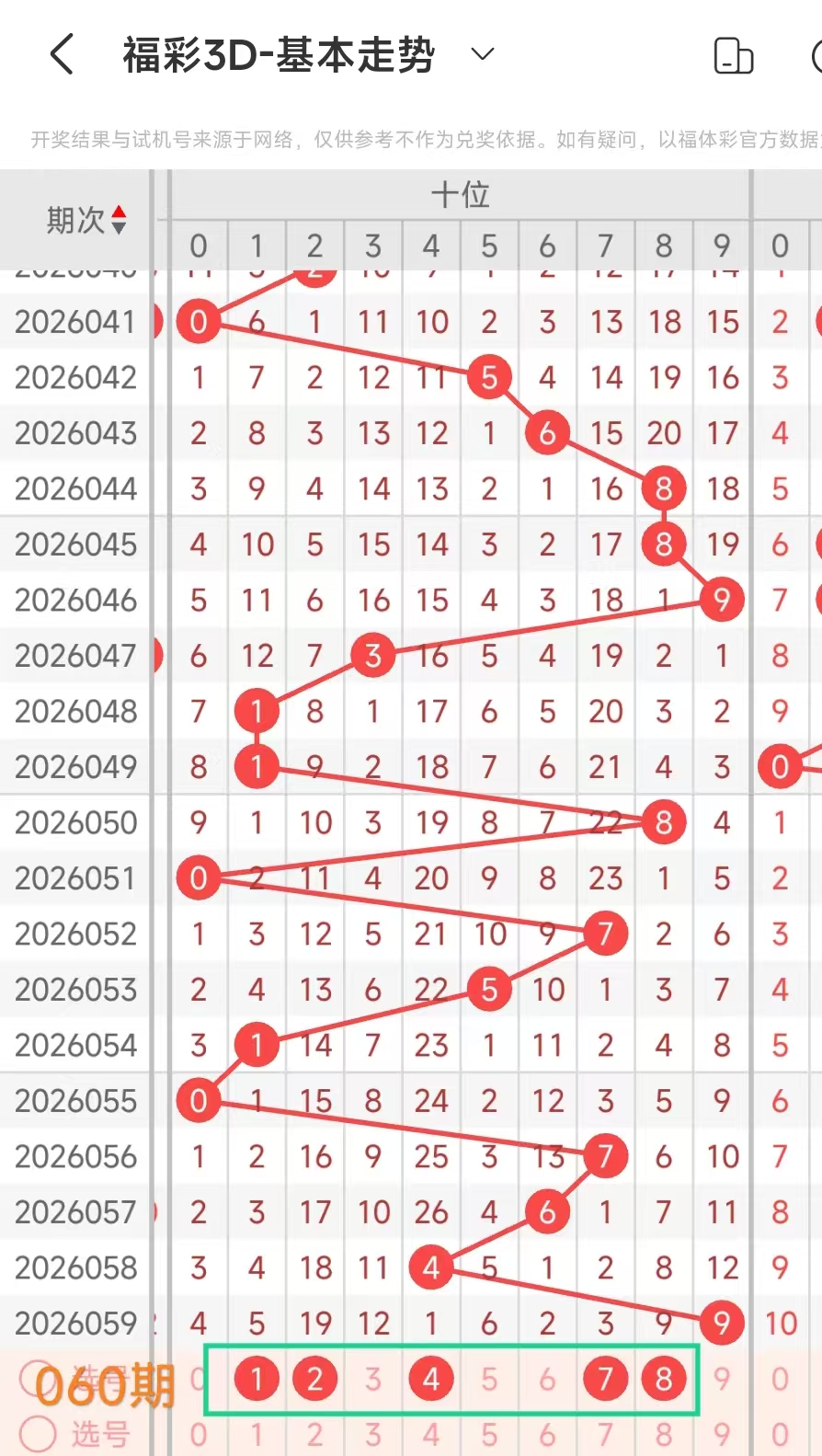 3、当个位开出4后下期开出:712331253,经统计0号出0次、1号出现2次、2号出现2次、3号出现3次、4号出现0次、5号出现1次、6号出现0次、7号出现1次、8号出现0次、9号出现0次。观察发现123号近期没有出现,本期可以考虑。