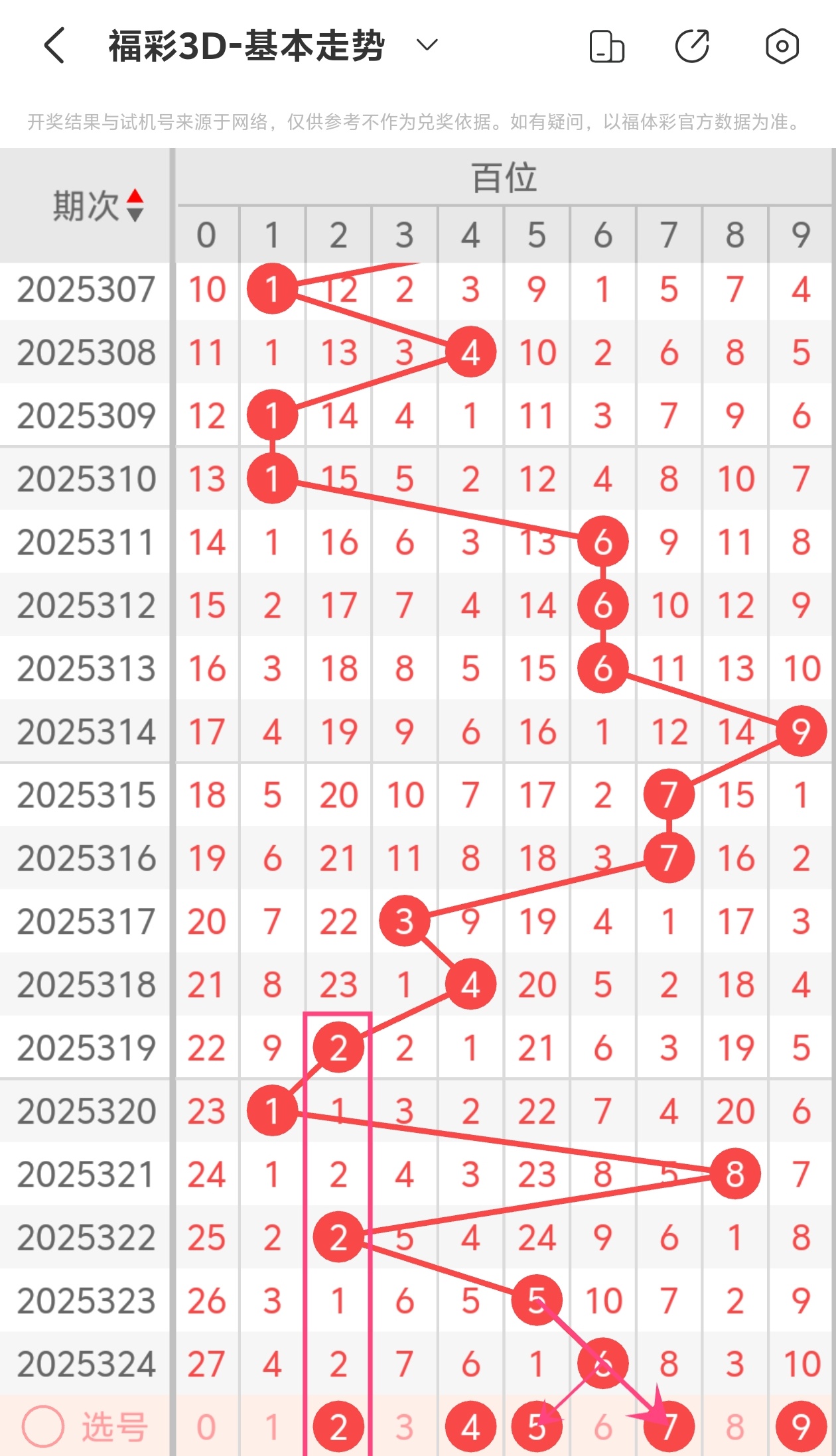 下面是福彩3D的百位走势图分析