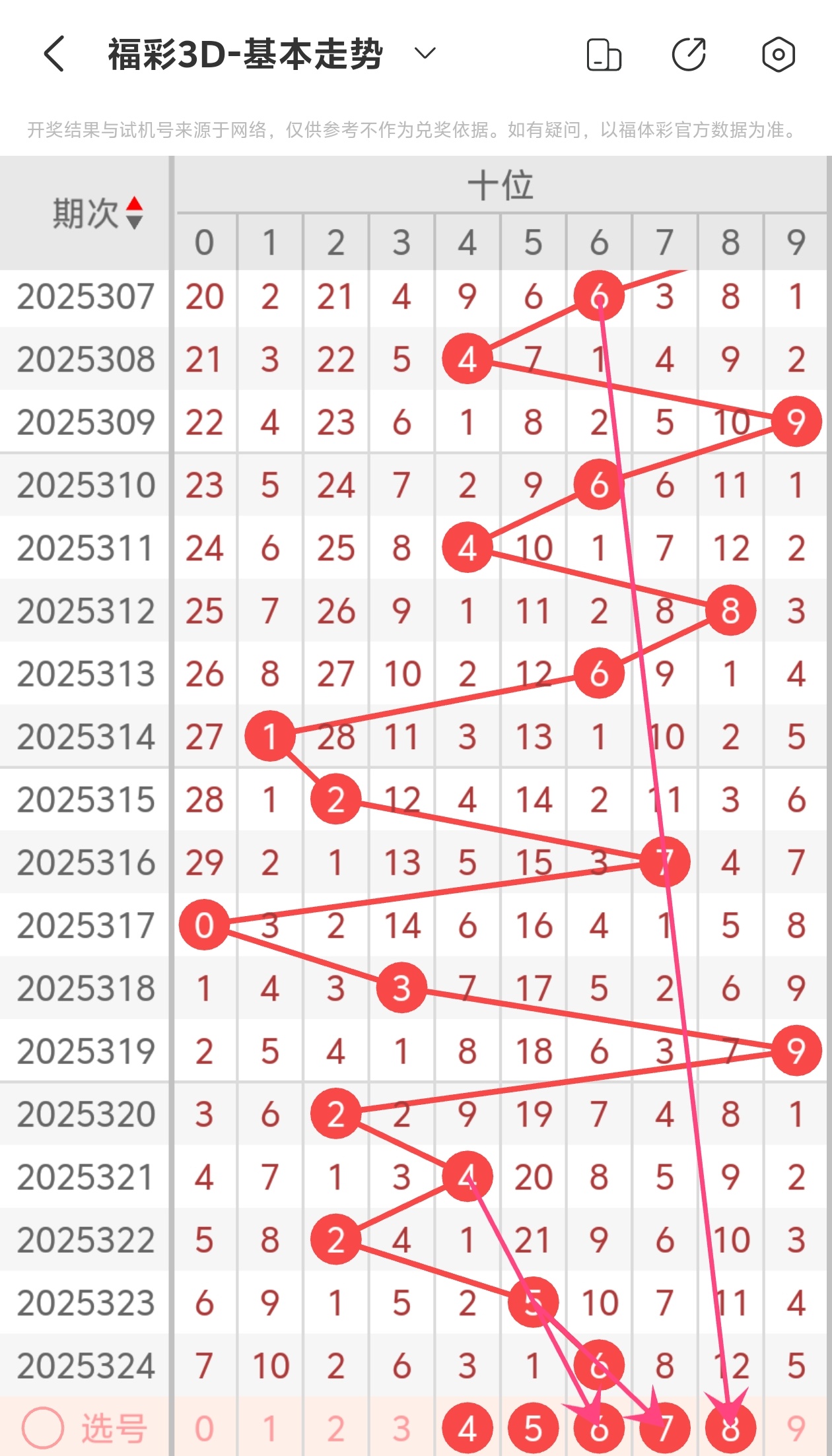 下面是福彩3D的十位走势图分析