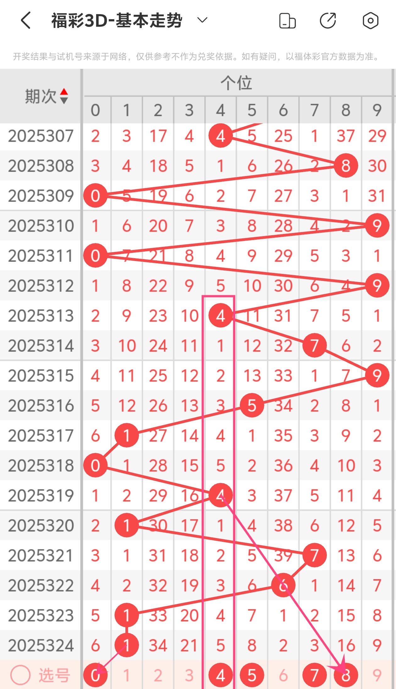 下面是福彩3D的个位走势图分析