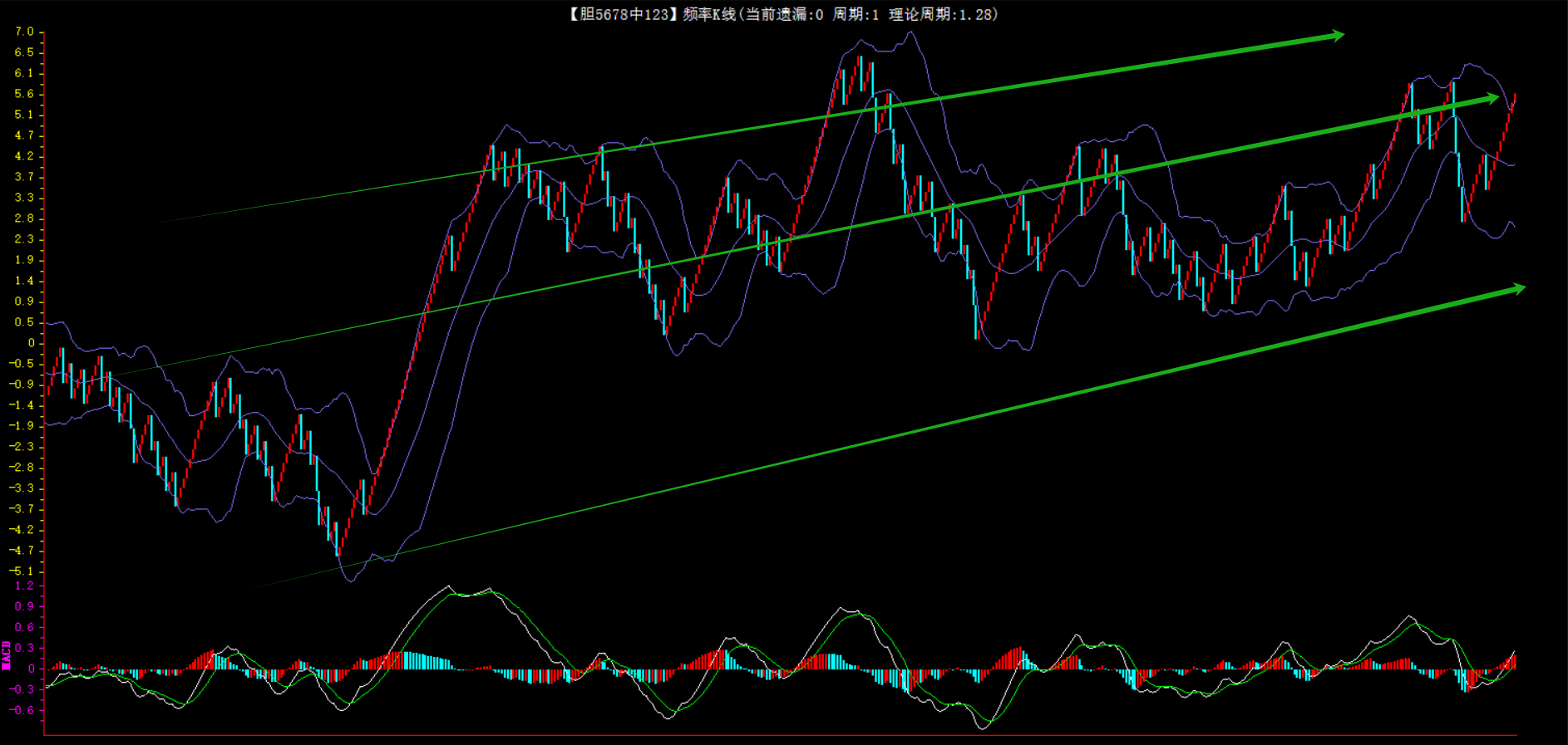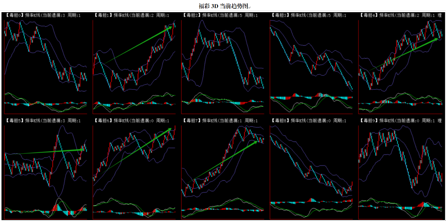 整体趋势上行,上边沿线趋势向上,下边沿趋势也是向上,节点震荡,当前遗漏2期,本期关注。