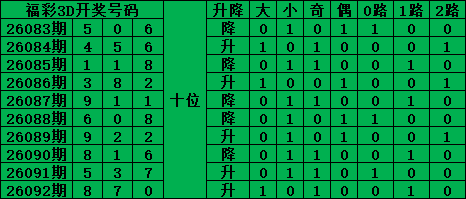 综上所述,福彩3D第2026093期号码推荐: