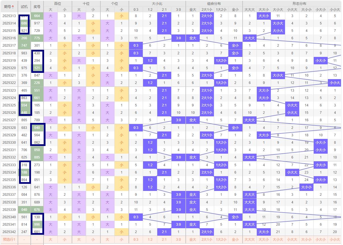343期/福彩3D综合分析 :大小走势.奇偶比列及跨度分析等组号分析