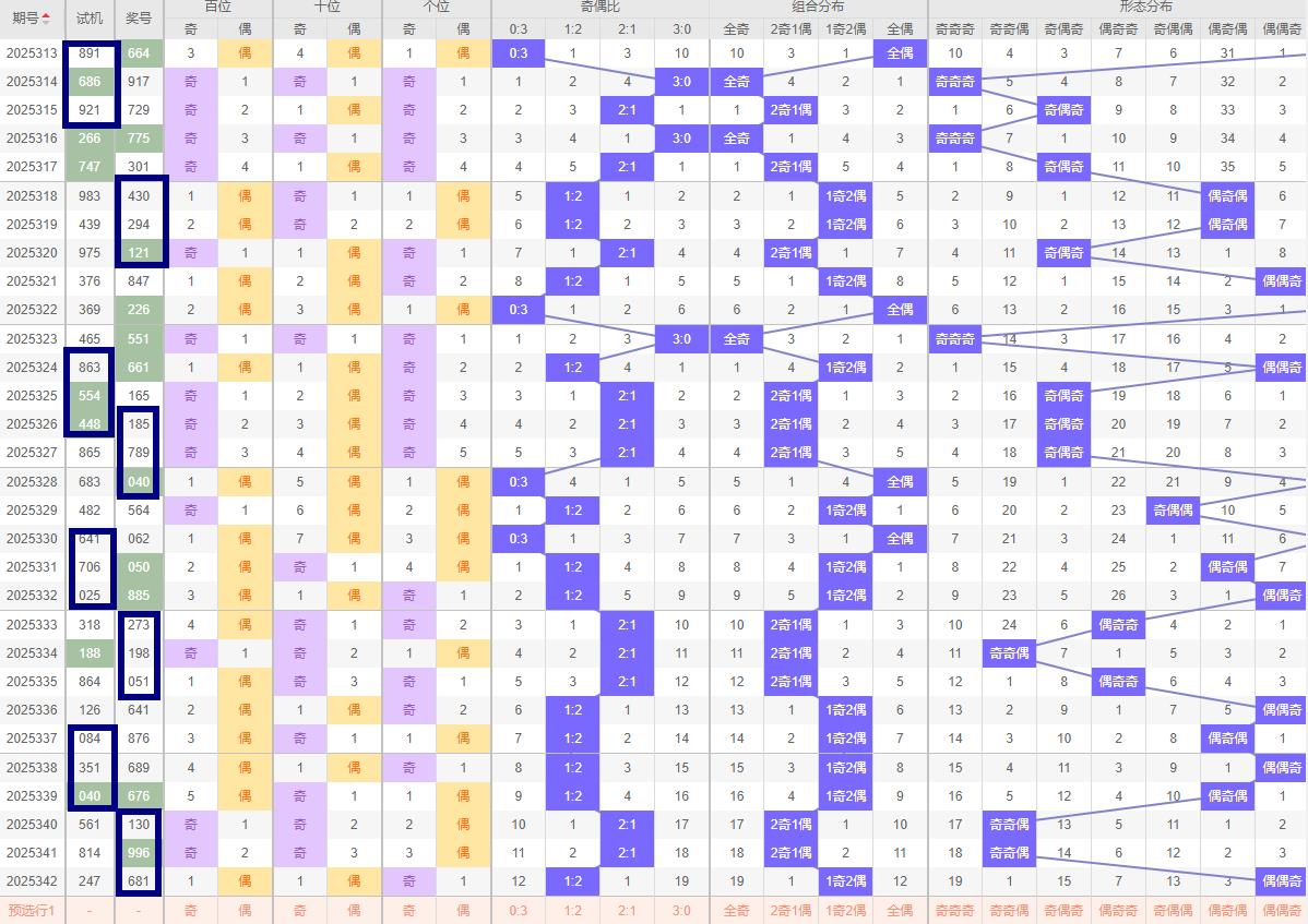 奇偶比例分析 342期的开奖号码为681;奇偶比为1:2,偶数占据主导地位。在奇偶比例的分析中,同样注重平衡原则。考虑到近期奇偶比的波动,可以预判329期的奇偶比例将继续保持平衡,即可能为2:1或1:2。这样的预判不仅符合历史数据的统计规律,也体现了奇偶比例在短期内的调整趋势,近十期奇偶比为15:15所以福彩343期重点关注两奇一偶号码