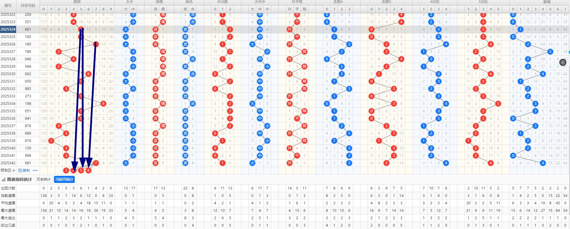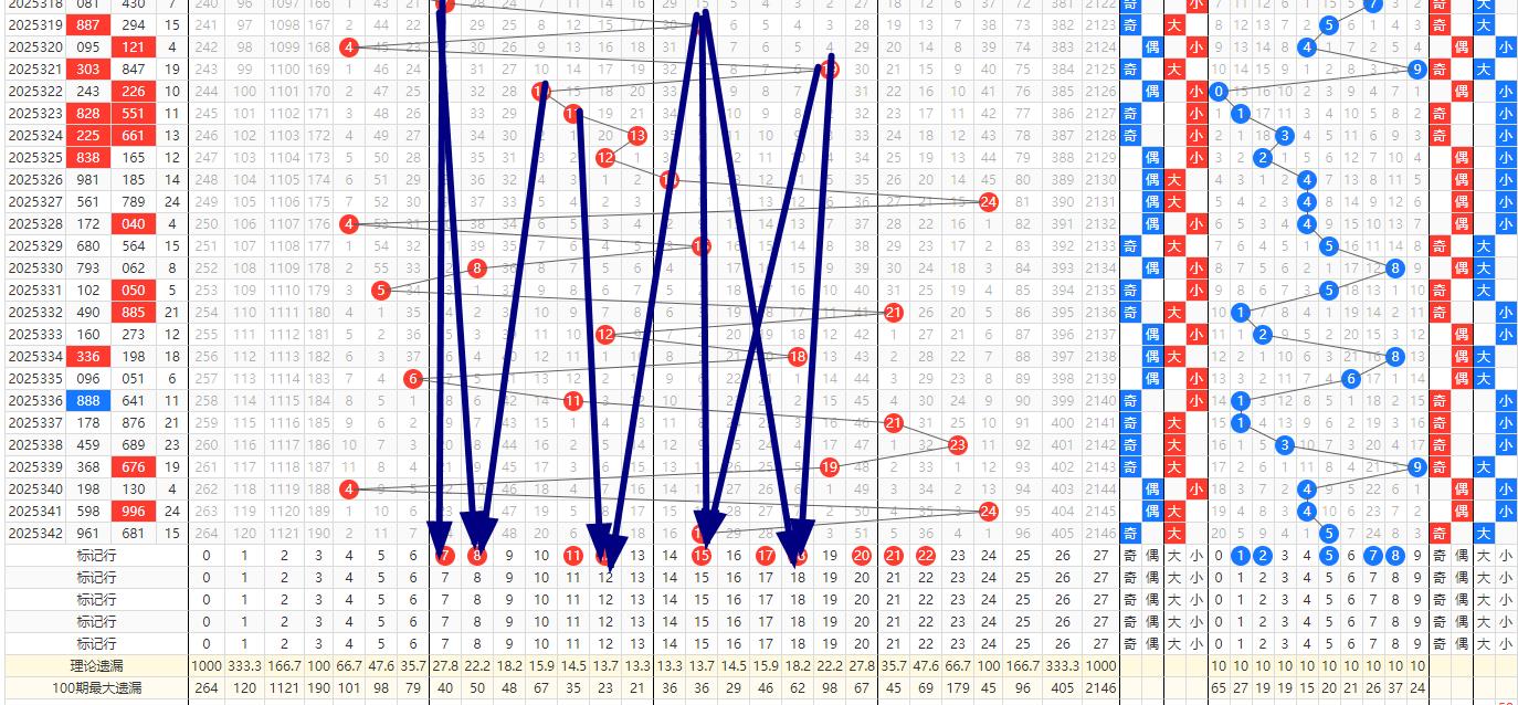 跨度预判 342期的开奖号码为681跨度为7,这是一个相对较大的跨度值。在跨度走势的分析中,注意到跨度值常常在短期内呈现跳跃性变化,但长期内趋于稳定。近十期跨度比5-8-5-5-2-3-1-3-3-7,012路比为3:2:5预判跨度值将在3到8之间波动,这样的预判既考虑了跨度的跳跃性,也体现了跨度的稳定性原则。