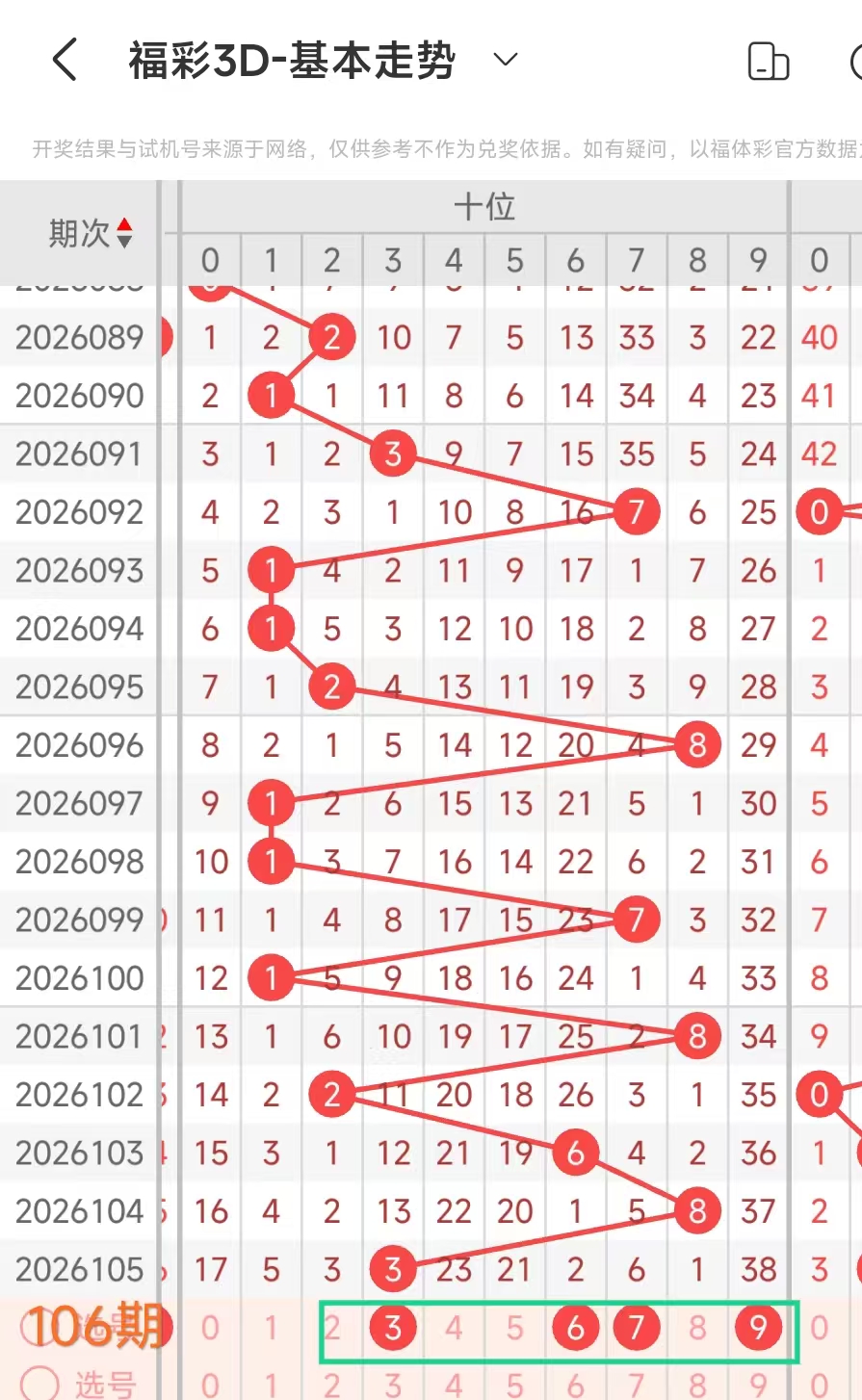 2、当十位开出3后下期开出:841907,经统计0号出1次、1号出现1次、2号出现0次、3号出现0次、4号出现1次、5号出0次、6号出现0次、7号出现1次、8号出现1次、9号出现1次。观察发现2356号近期没出,本期可以考虑一下。