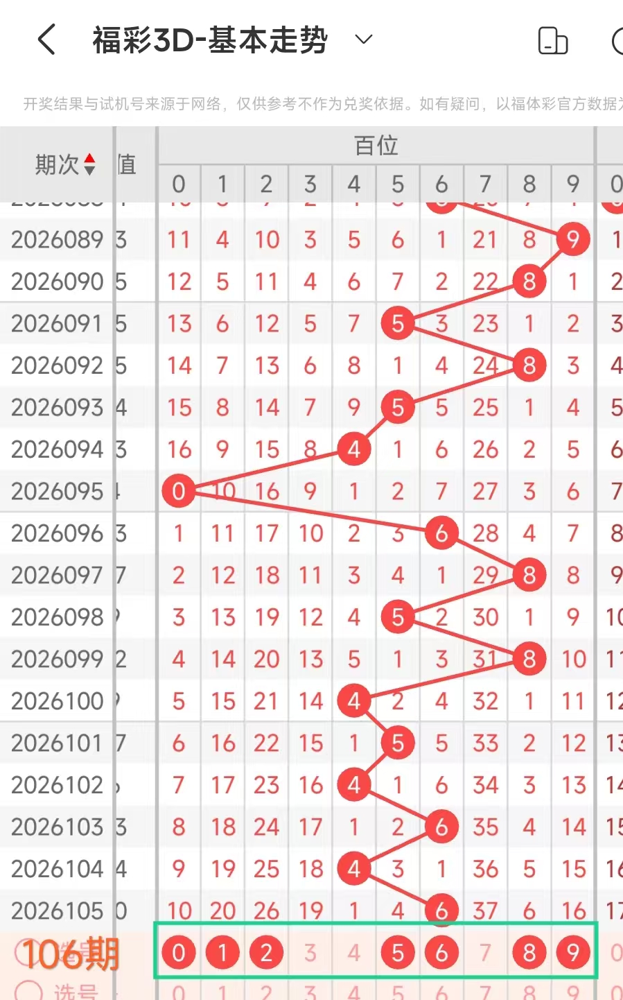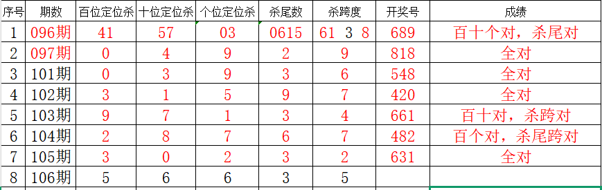 金莱3D第106期:上期金胆1对,中出胆拖一注等