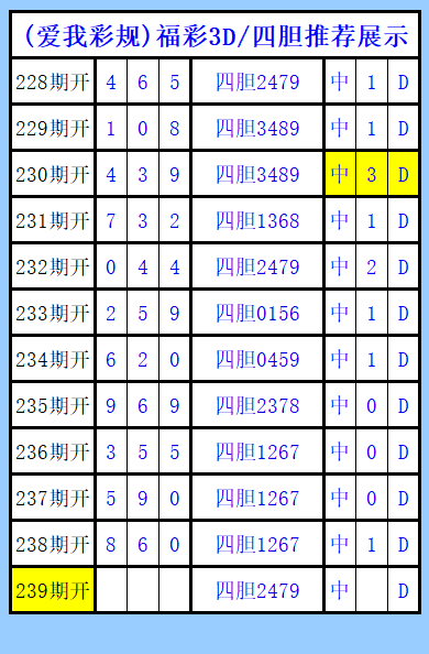 福彩3D第239期图文(爱我彩规),四胆推荐展示