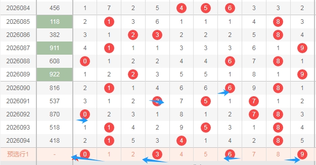 大家好,本人蔡楚门,一个玩彩十几年的老彩民,现在来本平台分享一下本人的对彩票的分析思路和看法,希望本人的文章能够给你们带来灵感和好的运气,首先感谢一起彩提供一个好的平台,下面走势图都是用一起彩平台的走势图,接下来分析一下福彩3D第2026095期号码思路。下面文章中名词解读,合数为0 4 6 8 9,质数1 2 3 5 7,奇数1 3 5 7 9,偶数0 2 4 6 8,1路球数字1 4 7,2路球数字2 5 8,,0路球数字0 3 6 9。下面分析是从左到右定位分析。