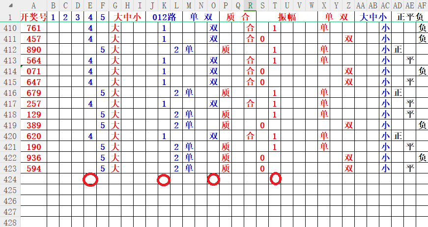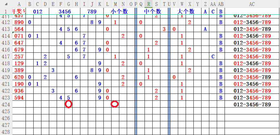 如上图56,大中小分析,中号3456出胆码,最低1个胆码,重点35