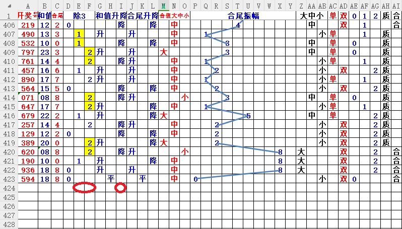 升降平:升就是本期和值大小比上期和值大小大,小于就是降,如果一样就是平,和尾也是一样。