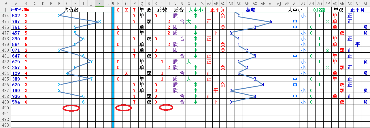 均值:就是开奖号每各数的总和除3,然后得到的余数,如果不够整除可以+1,-1,直到被整除得的数就是均值