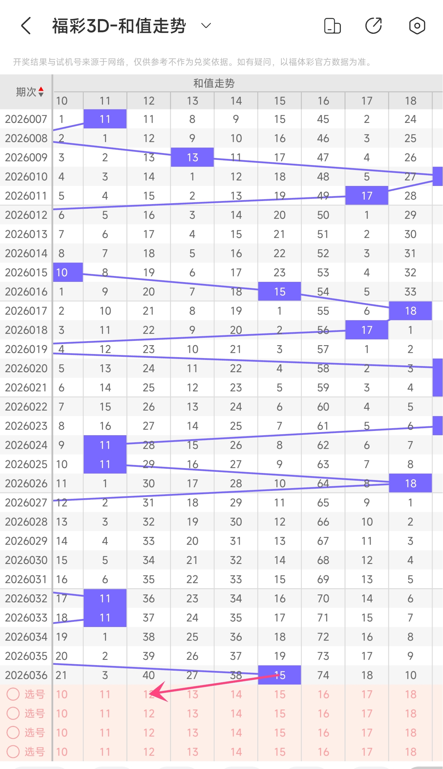一、通过和值走势分析: