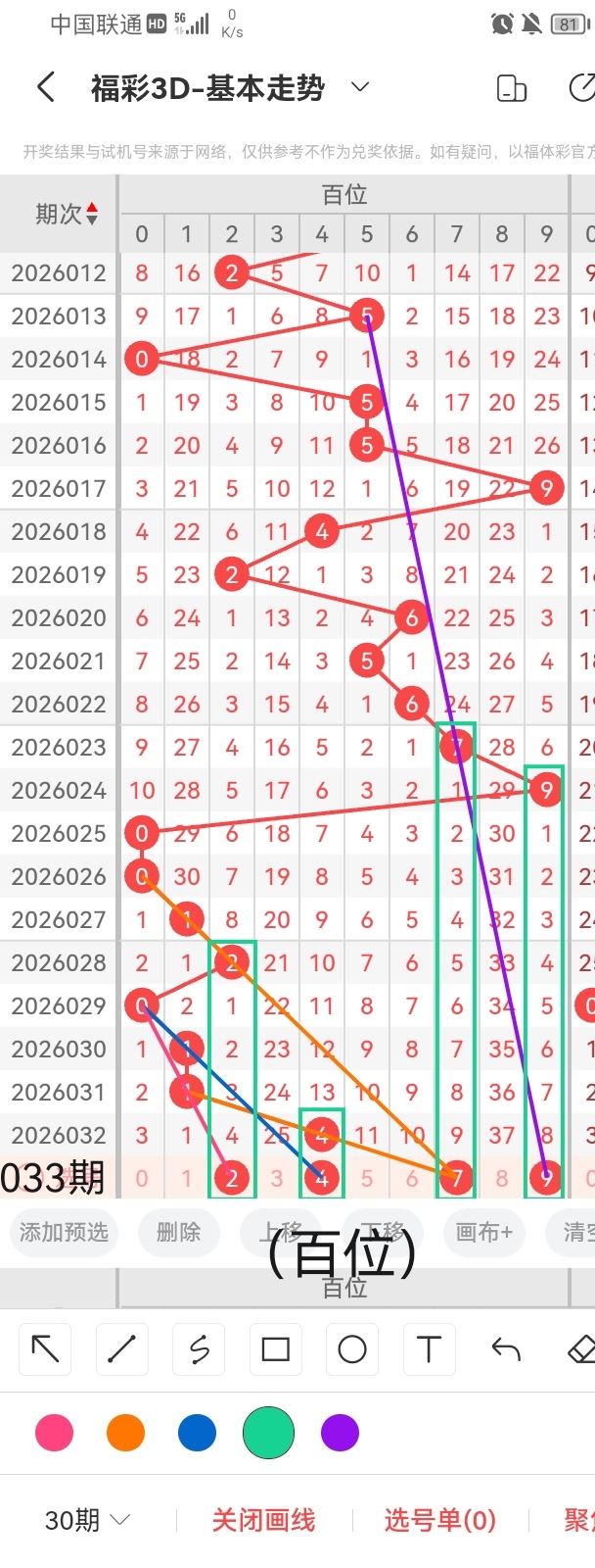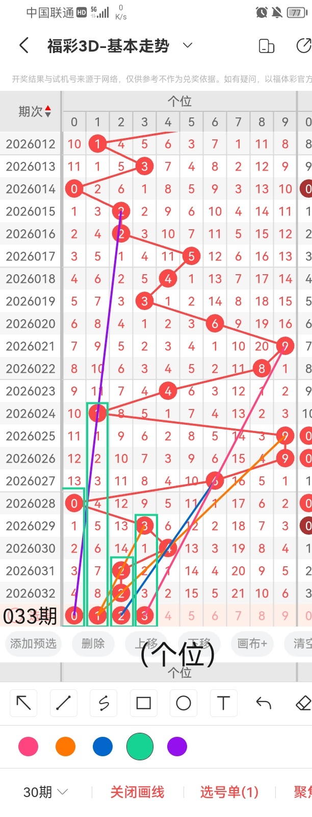 通过以上对上期的简单回顾,下面进入2026033期(下面简称本期)的选号分析: