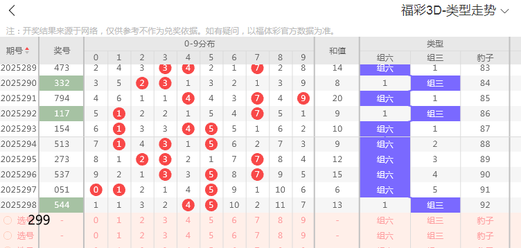 福彩3D第299号分析与方法技巧分享