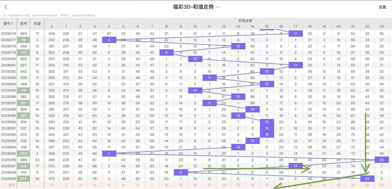 2026100期福彩3D和值走势图如下: